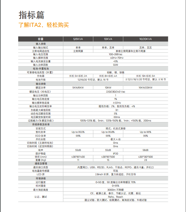 ITA2全系列輸出功率因數提升至1,KVA=KW,帶載能力提升20%以上