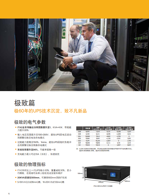 ITA2體積比上一代UPS縮小30%,重量減輕30%,更小巧精致,在現場可由單人輕松完成安裝和維護